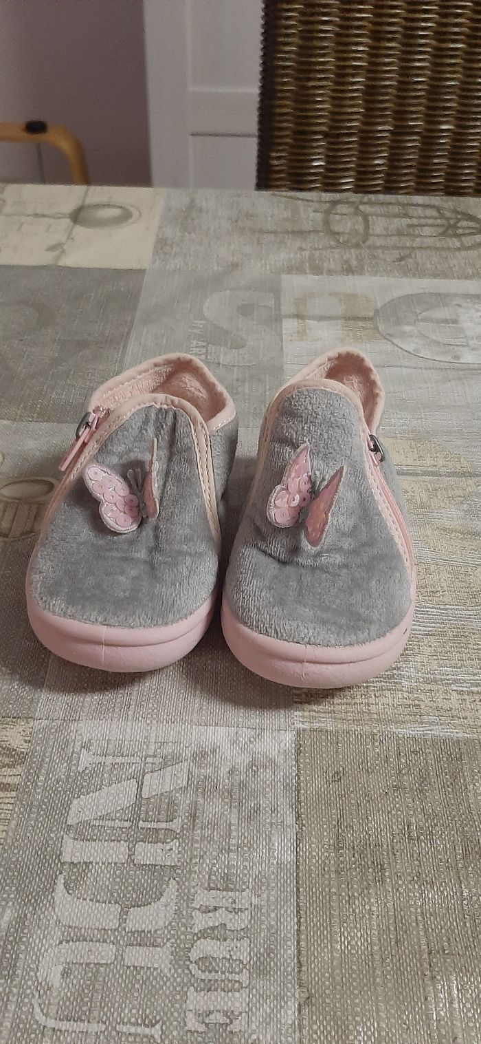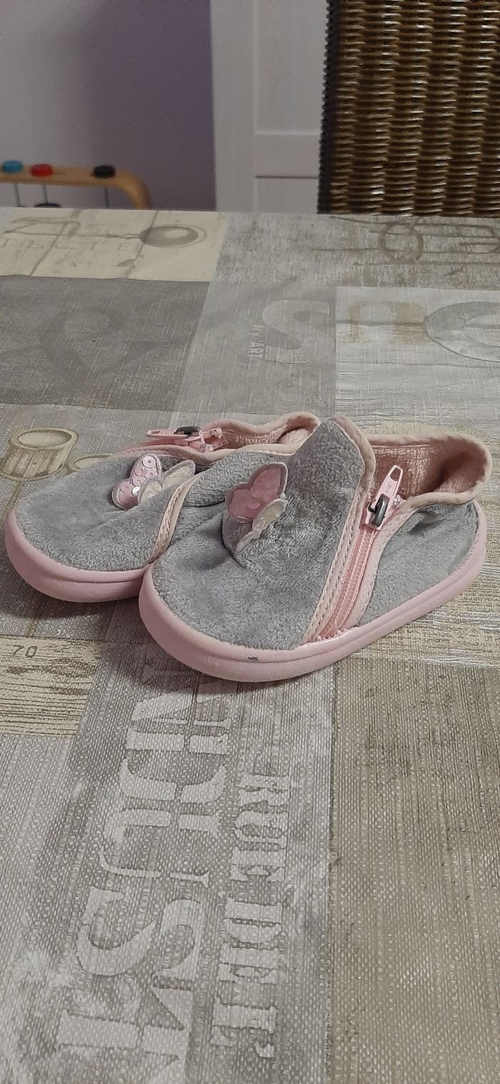 Chaussons gris et roses - photo numéro 1