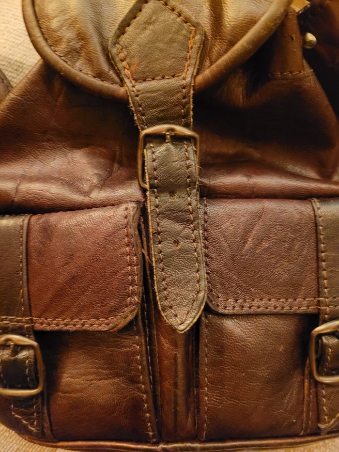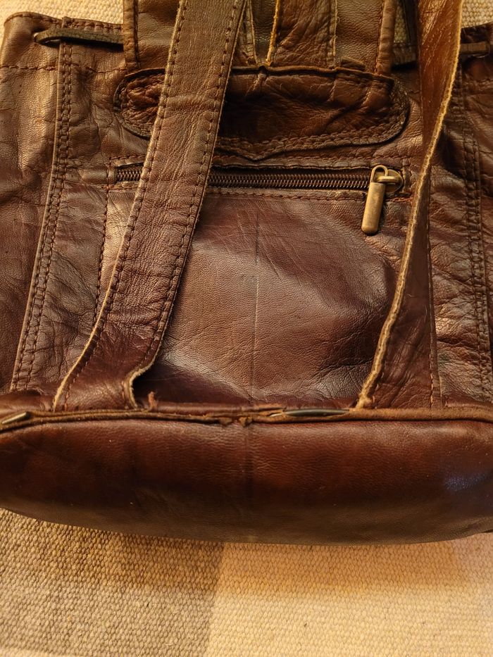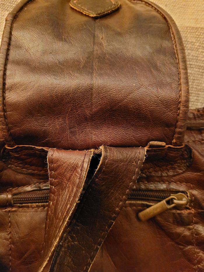 Mini sac à dos cuir vintage marron – 24 x 21 cm – Très bon état - photo numéro 9