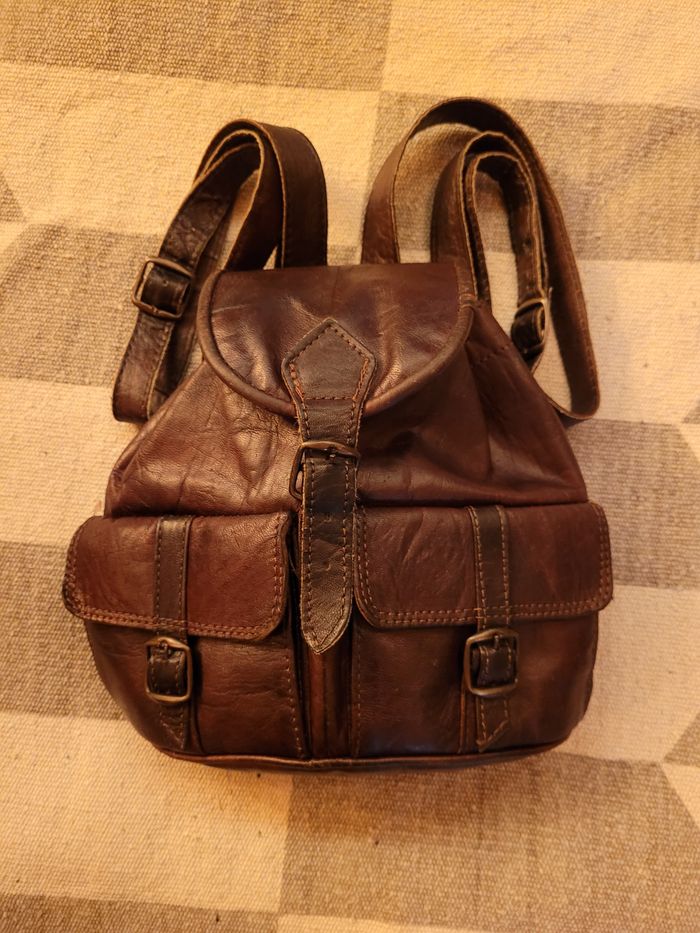 Mini sac à dos cuir vintage marron – 24 x 21 cm – Très bon état - photo numéro 1
