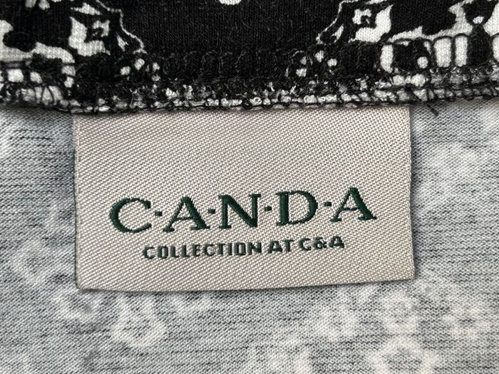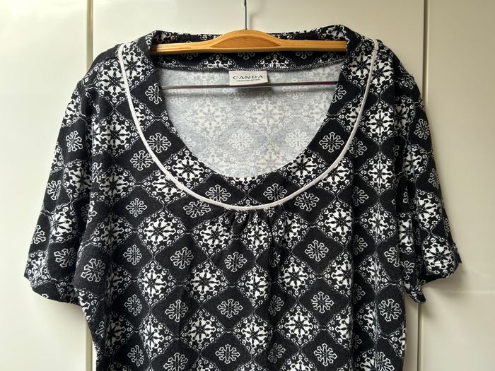Tee-shirt noir et blanc Canda Taille L La mesure d'aisselle à aisselle est de 52 cm. La longueur est de 65 cm. 95% Viscose 5% Elasthanne