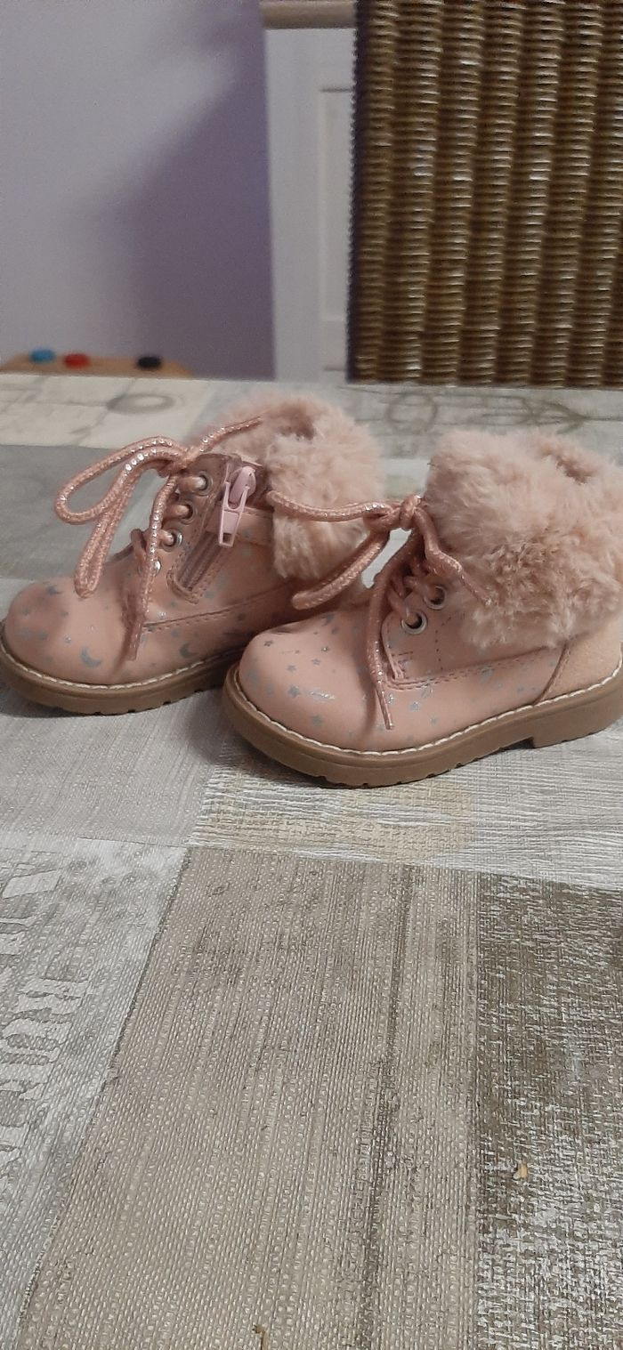 Chaussures montantes roses avec fourrure en partie haute taille 18
