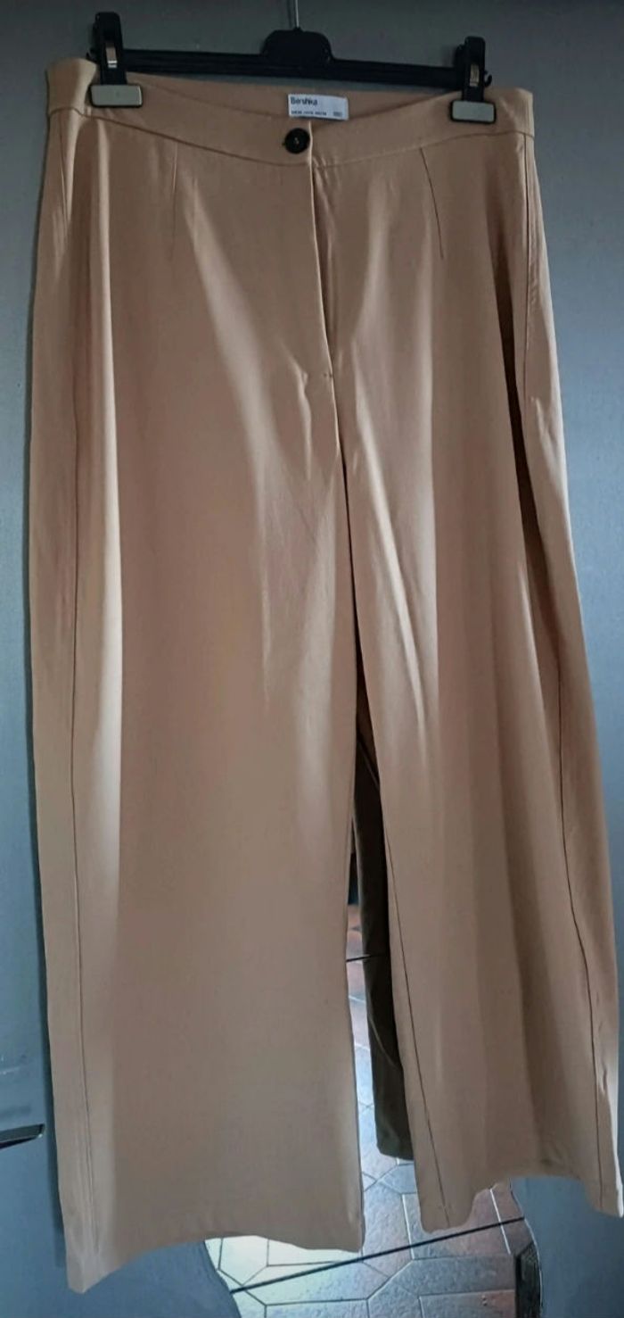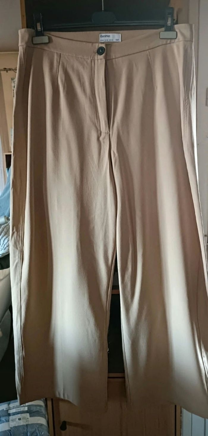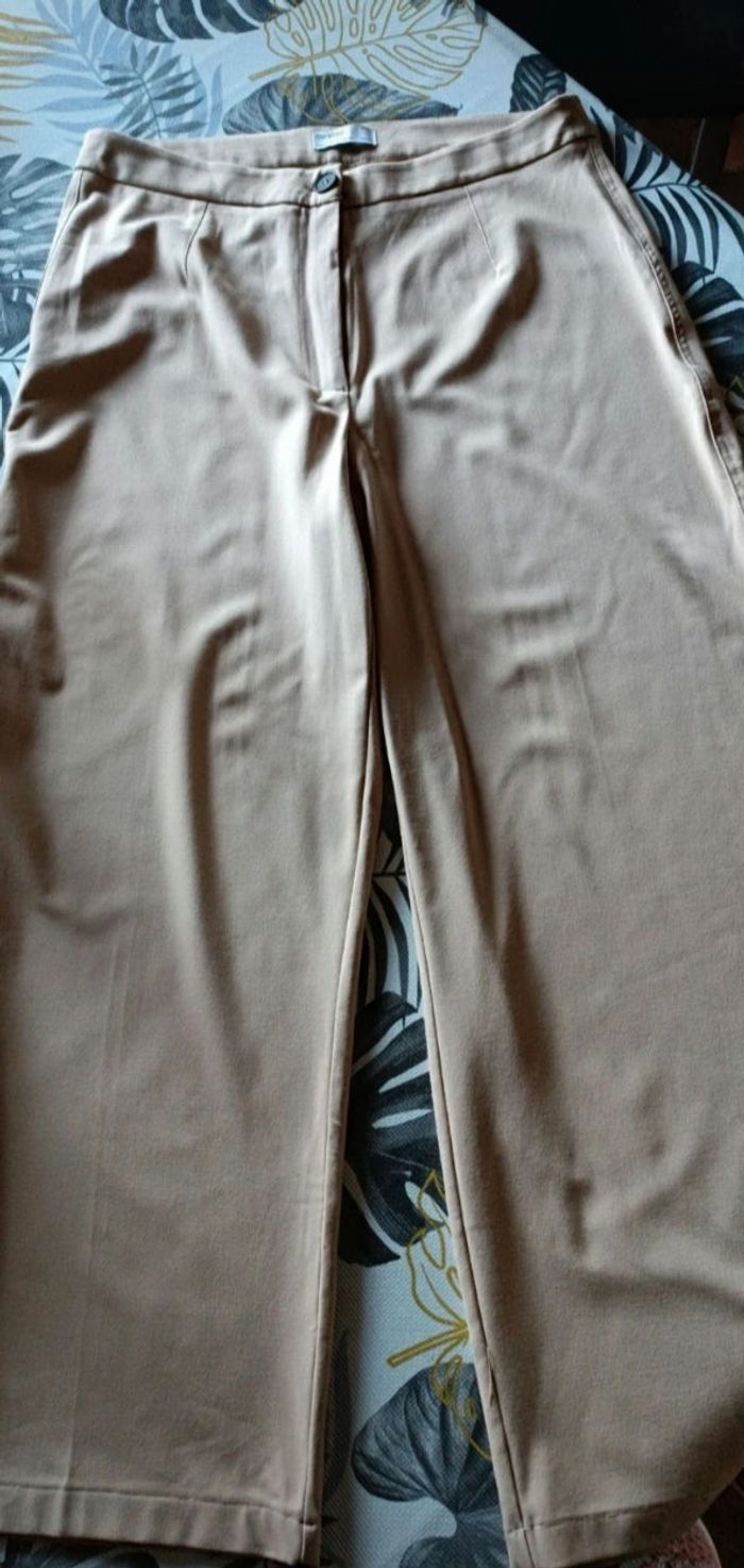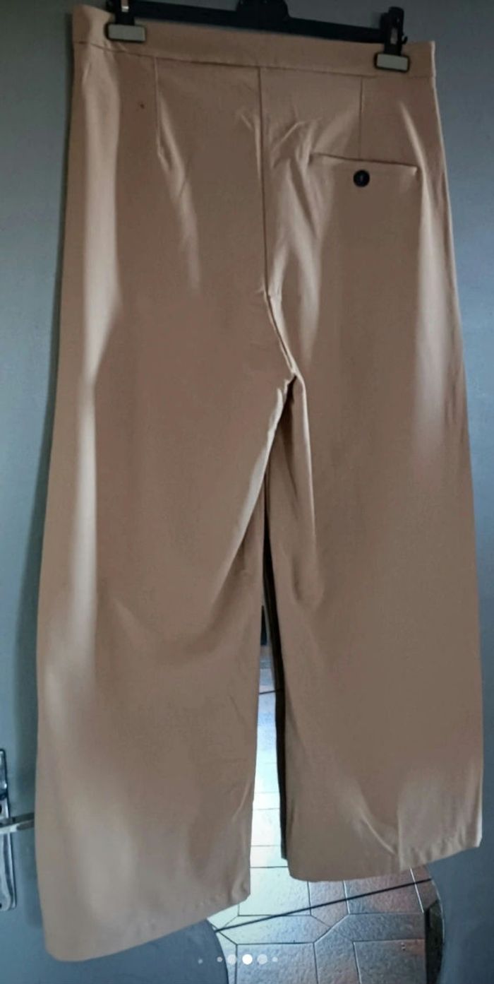 Taille 44 Couleur camel voir dernière photo Pantalon taille haute Ajusté aux hanches et a la taille Jambes larges Tissu léger et fluide Légèrement stretch Fermeture glissière et 1 bouton 1 poche arrière fermée par 1 bouton Article retouché sur l'ourlet 64%polyester 33%viscose 3%elastane Longueur 101cm Longueur fourche avant 34cm largeur taille 43cm largeur hanche 54cm largeur cuisse 34cm largeur bas de jambe 29cm #bershka #pantalonlarge #pantalonbershka44 #bershkafemme #palazzo #palazzotaillehaute #wideleg #widelegpants #palazzopants #palazzopantalon #taillehaute #pantalontaillehaute