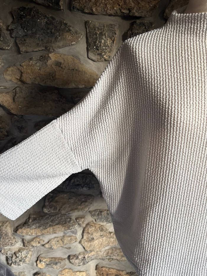 Pull blanc côtelé, manches 3/4 Effet chauve-souris Taille M