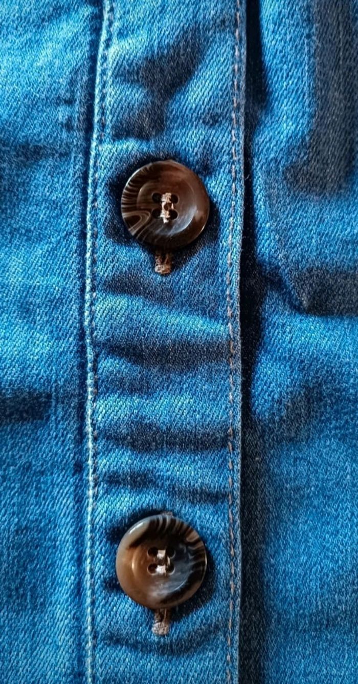 Jupe jeans vintage originale Coupe droite, longueur au-dessus du genou. Braguette entièrement boutonnée visible. Passants pour ceinture. Poches plaquées devant + poches au dos. Surpiqûres contrastées. Denim bleu moyen légèrement délavé. Style casual Rétro années 70 si portée avec chemise rentrée. Y2K si portée taille basse avec top court. Aucun défauts, excellent etat Effet push up Fermeture devant sur toute la longueur par 6 boutons 3 poches devant, sur côté droit superposition des poches 6 large passant de taille 2 poches arrière Pas d'étiquette de composition Stretch Longueur 50cm largeur taille 36cm largeur hanche 43cm #jupe #jupejeans #jupejean #pimkie #pimkiefemme #denimlife #fermetureboutons #jupejean #denimskirt #boutonsdevant #vintagestyle #lookretro #retro70s #retro70 #casualstyle #y2klook #basiqueindispensable