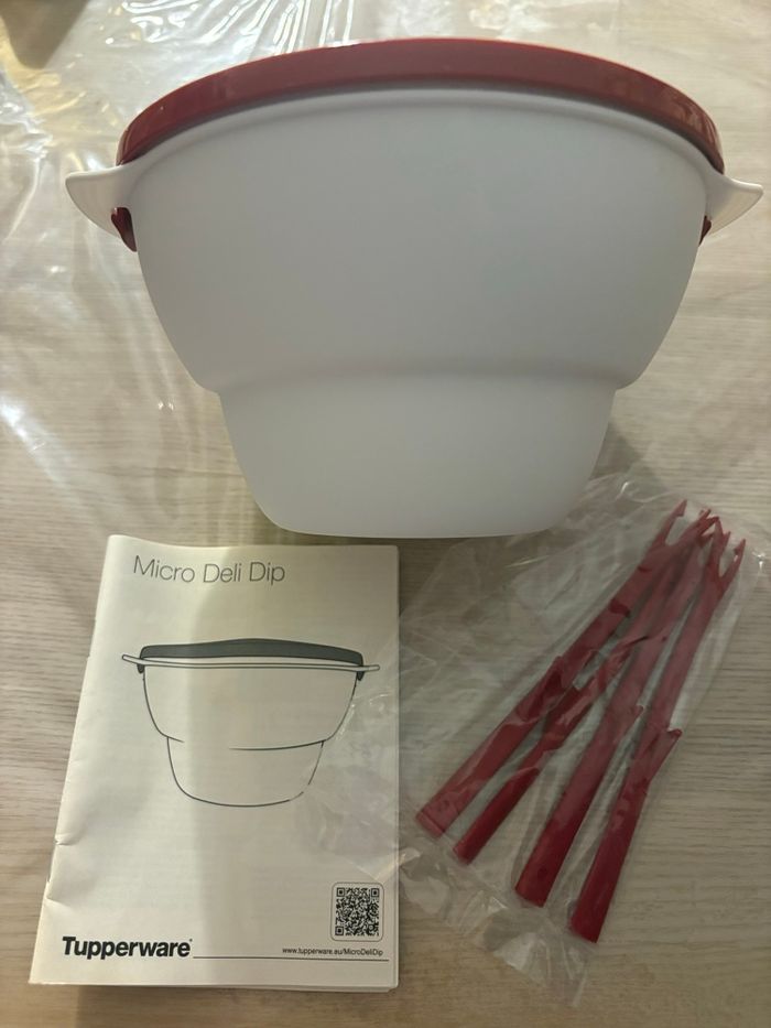 Fondue Tupperware – Gamme Allegra – Rouge et blanche Je vends une fondue Tupperware de la gamme Allegra, entièrement neuve, jamais utilisée. Elle est fournie sans la boîte d’origine, mais avec sa notice complète et ses 4 piques. Idéale pour les fondues au chocolat, sauces, apéros conviviaux ou petites préparations chaudes. Design compact, pratique et facile à utiliser. 👉 État : Neuf 👉 Couleur : Rouge et blanc 👉 Marque : Tupperware (gamme Allegra) 👉 Accessoires : Notice + 4 piques Parfait pour offrir ou se faire plaisir.
