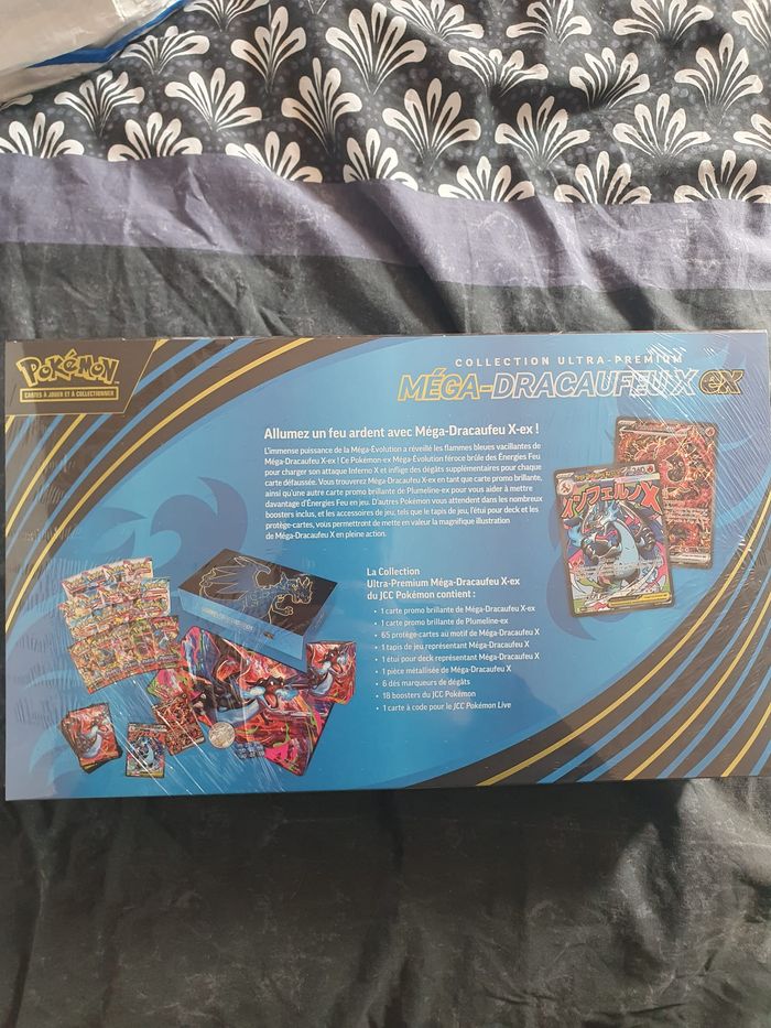 Bonjour à tous, A vendre UPC Mega Dracaufeu X EX. Contenu du coffret: - 2 cartes promo (Mega Dracaufeu X EX et Plumeline EX) - 18 boosters du JCC (EV et ME) - Tapis de jeu, sleeves, étui de rangement, jeton et dés de jeu Envoi soigné garanti ! Bien d'autres cartes sont disponible dans la boutique ! N'hésitez pas à faire des lots pour économiser sur les frais d'envoi ! Pour tout achat d'une carte à l'unité ... 1 carte HIT peu commune mystère offerte ! N'hésitez pas à prendre une photo de votre réception pour nous la partager dans les avis ! Bien à vous les dresseurs !