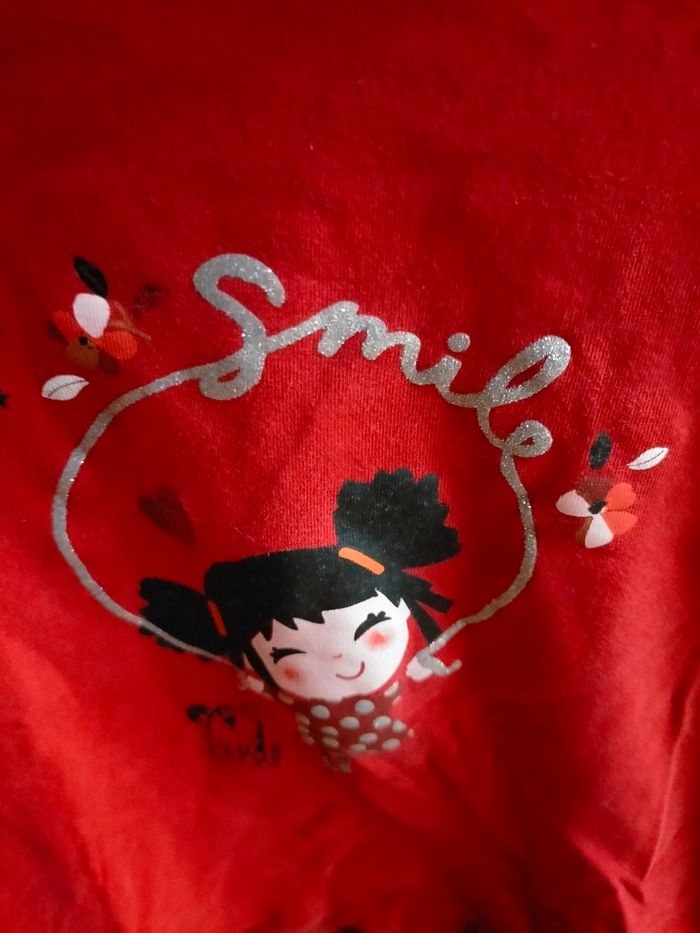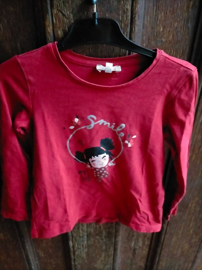 TBE Ravissant tee shirt à manches longues en jersey de coton rouge. Motif kawaii devant et étiquette catimini au dos