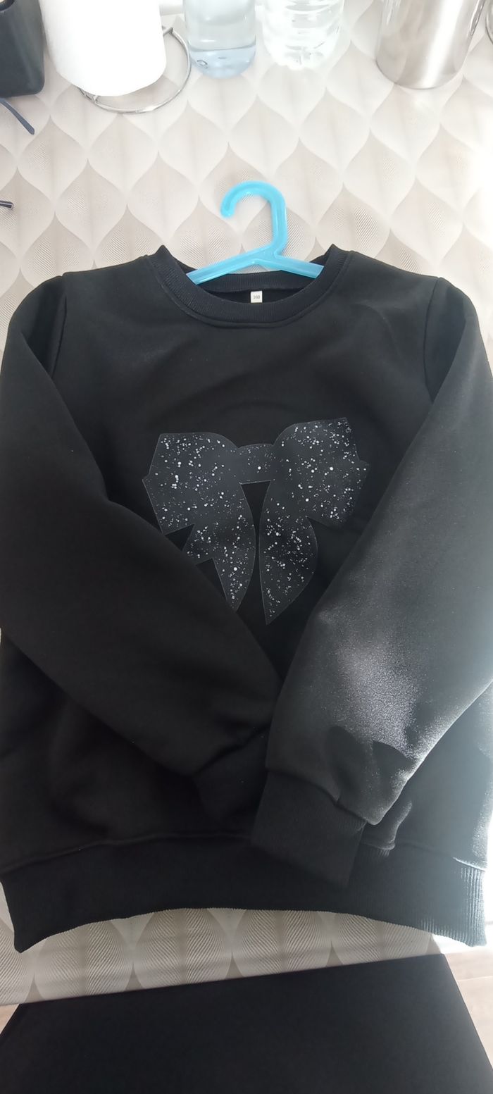 Je vends un pull neuf . Couleur noir avec motif noeud. Taille 13/14 ans .(160cm) Hiver ( tient chaud )