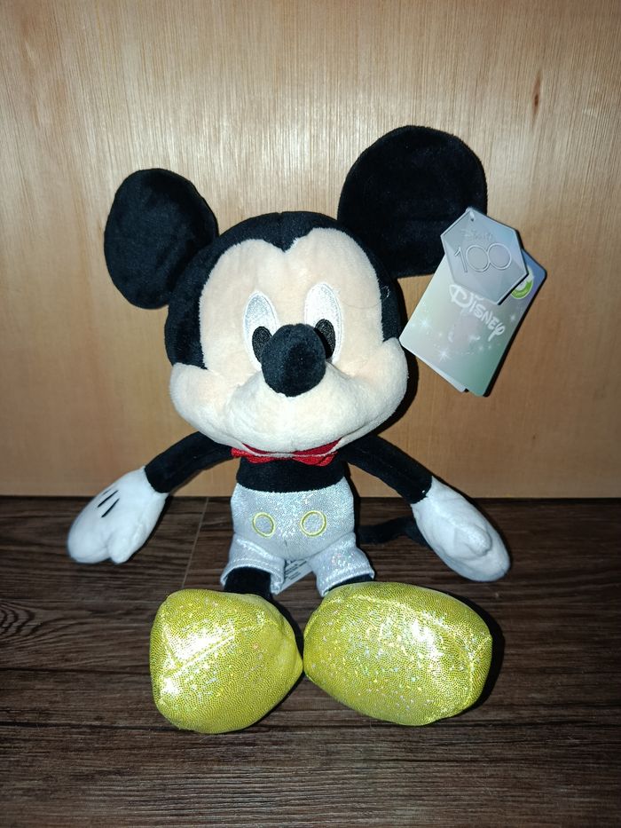 Peluche Mickey mouse collection 100 ans. Neuve. Environ 30 cm. Couleur argent et or.