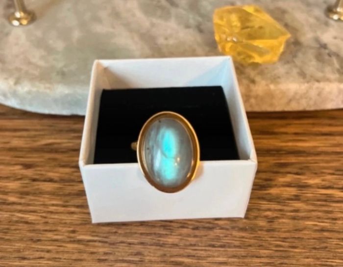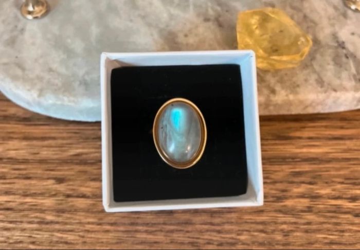 Bague dorée ajustable inoxydable pierre Labradorite bleue  - photo numéro 1