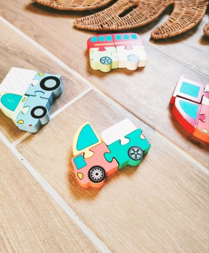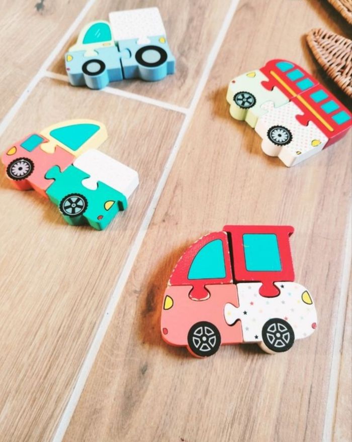 🚗Jeu de motricité-Lot de 4 Puzzles en bois blocs/ vehicules - marque Wood n play - photo numéro 3
