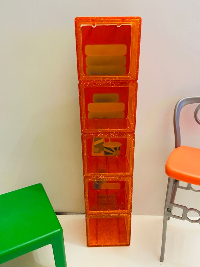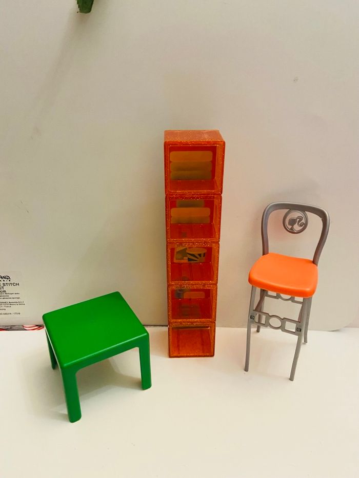 Pour maison poupée Barbie Étagère à paillete magnifique orange Table basse Chaise Barbie mattel