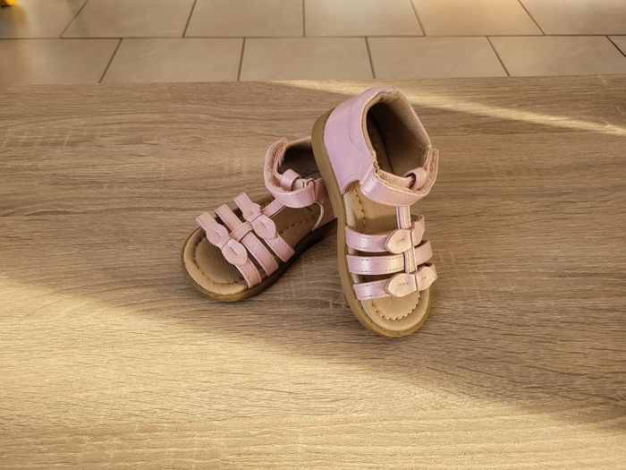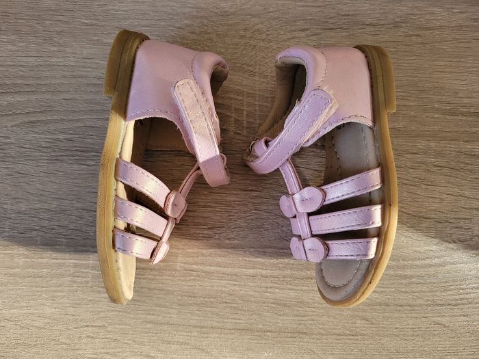 Vend paire de chaussures fille modèle sandales ouvertes sur le devant, taille 22 en bon état juste des signes d'usures liés au port des chaussures (voir photos). Vendu tel que sur la publication.