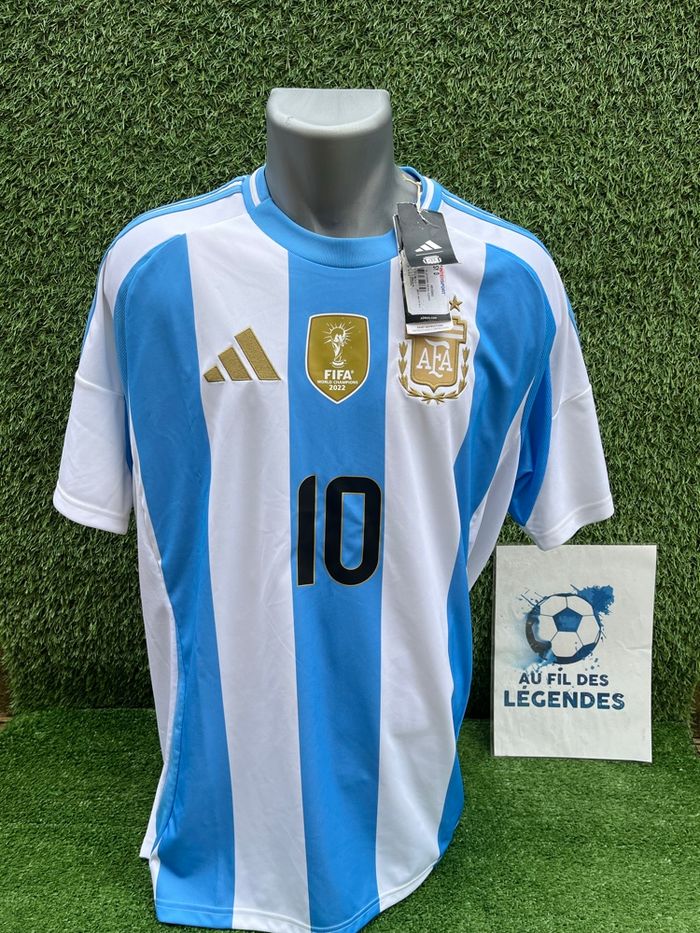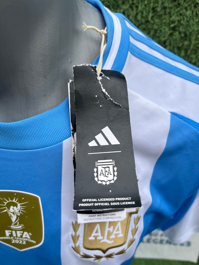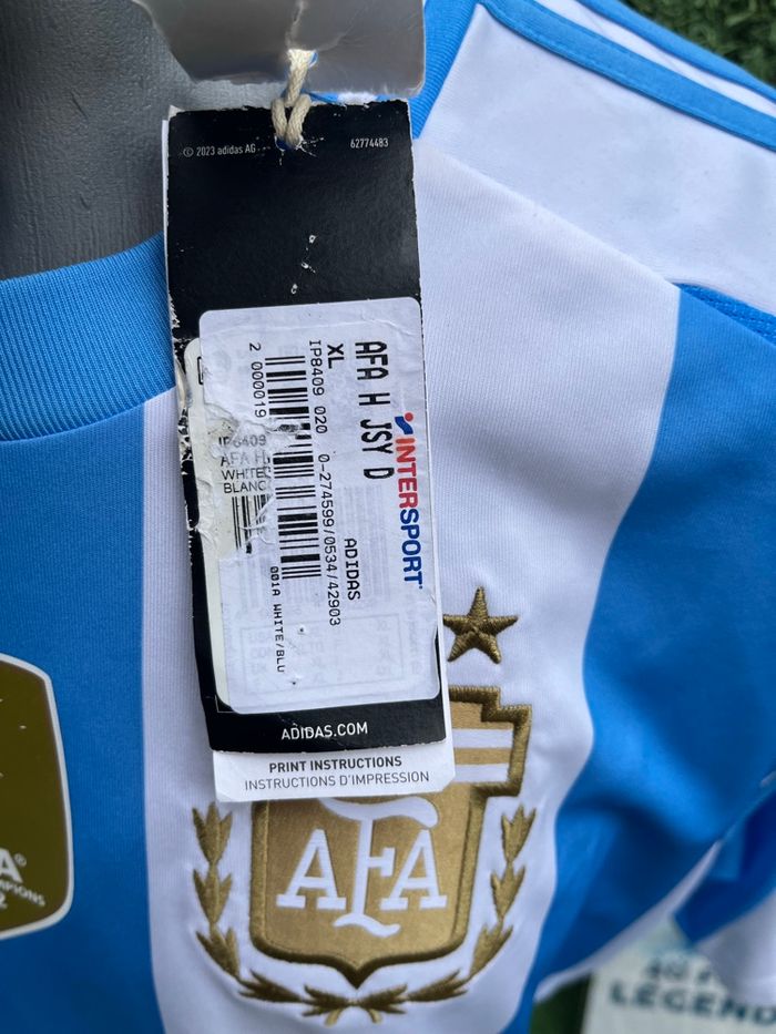 Bonjour Maillot Messi Argentine Neuf avec ses étiquettes Pour homme Taille XL Marque Adidas Authentique Le maillot est incroyable badge champion du monde sur la poitrine Maillot avec lequel l’argentine remporte la copa america 2023