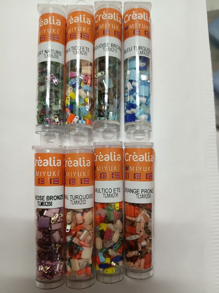 J'arrête la création de bijoux et je vend une partie de mon stock- 8 tubes neufs de perles Miyuki Tila voir photos- Pour ma part, très belle qualité- rendu régulier et pas de perte- Je vend le lot uniquement- Provisoire cultura- creatis