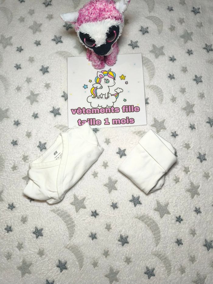 Ensemble Body + legging mixte H&M - 1 mois - blanc - très bon état - photo numéro 1