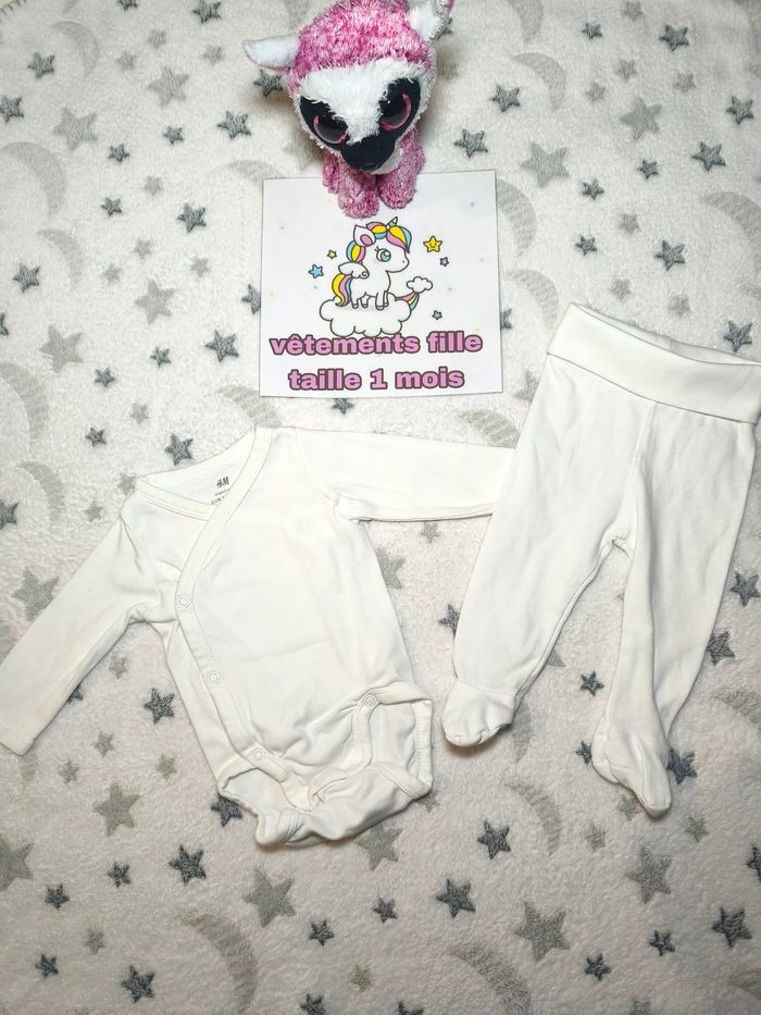 Ensemble Body + Legging mixte H&M - taille 1 mois - blanc - très bon état - photo numéro 1