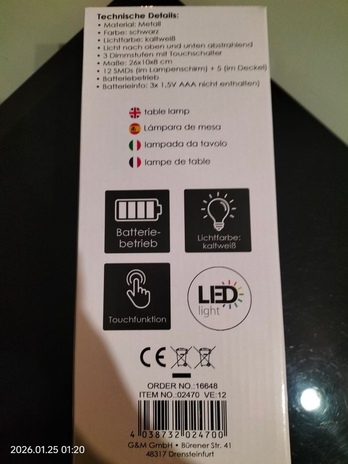 Lampe de chevet à pile 3 positions d'éclairage