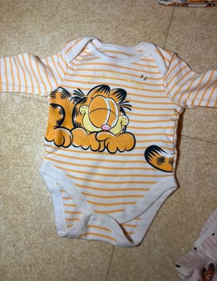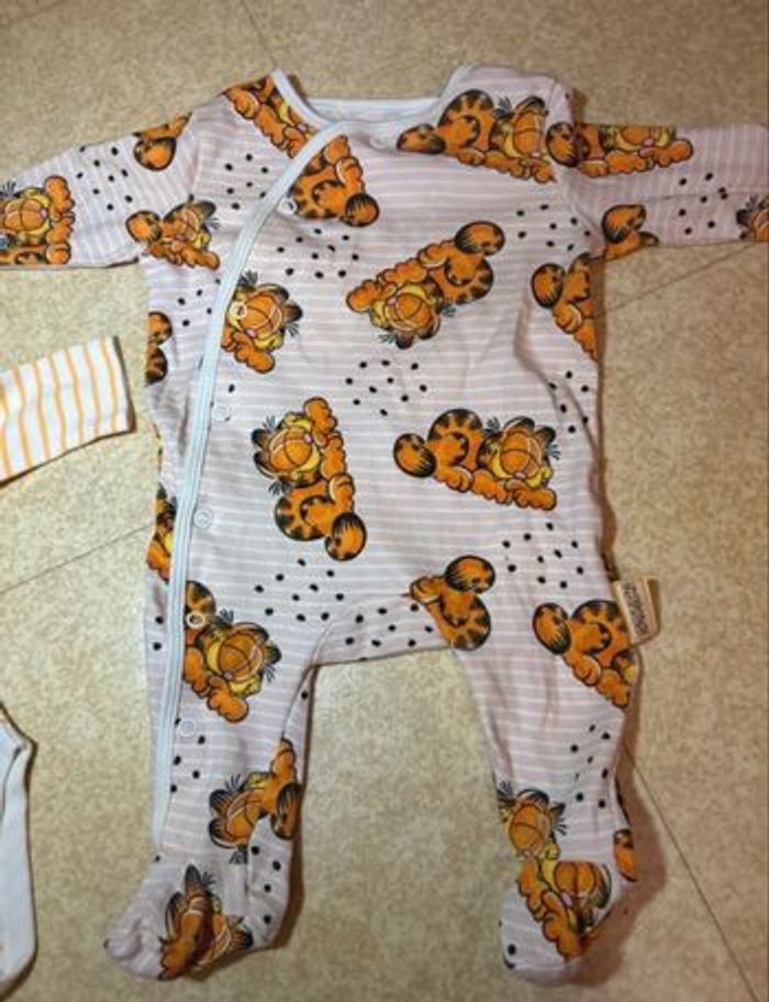 Ensemble Garfield -> 1 pyjama + 1 body + 1 bonnet Neuf Jamais portée Aucun trou Aucune tache Taille -> 0/3 mois Pour toute question n’hésitez pas à me contacter