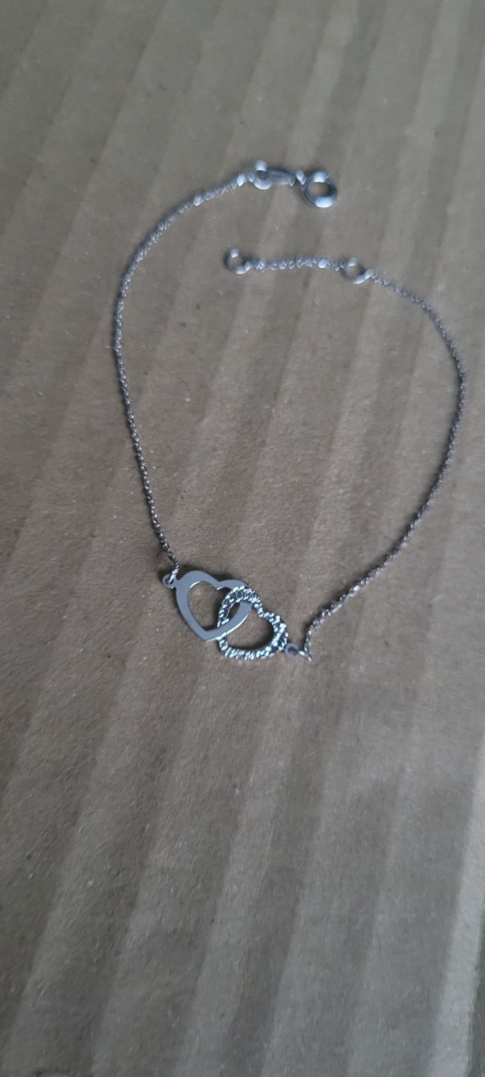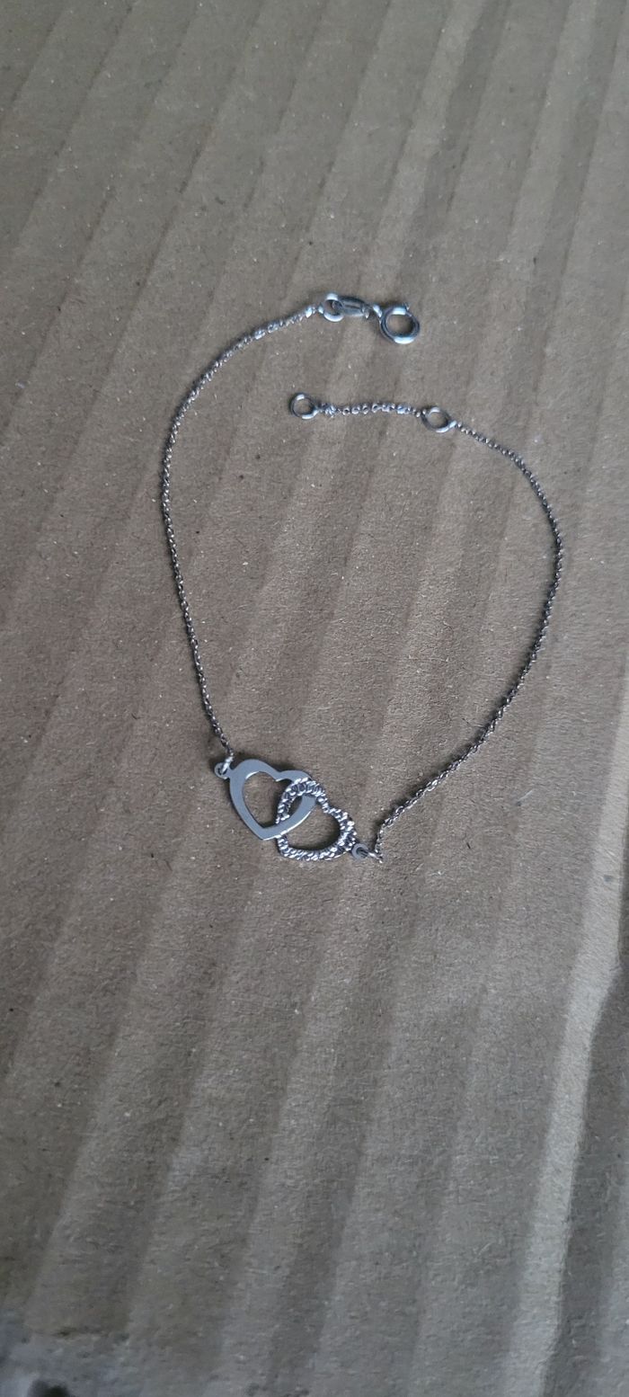 Bracelet en or blanc 9 carats coeur entrelacées En tres bon etat Poincons sur le fermoir