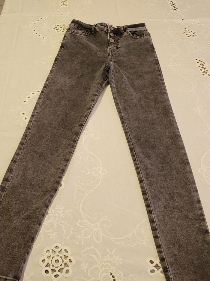 Jean Slim Gris Délavé - Taille Haute - Style Urbain - photo numéro 1