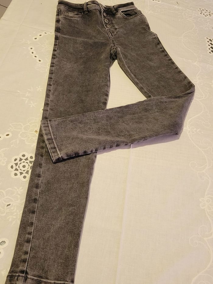 Jean Slim Gris Délavé - Taille Haute - Style Urbain - photo numéro 2