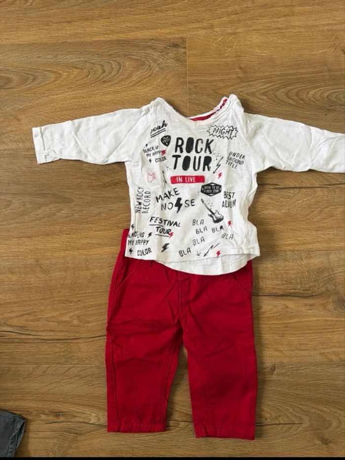 ✨ Ensemble chemise, haut et pantalon ✨ Taille: 6 mois ✨ Marque: Grain de Blé ✨ Couleurs: gris, rouge et blanc ✨ Très bon état, petit trou lié à l’étiquette sur le derrière du haut blanc (voir la dernière photo)