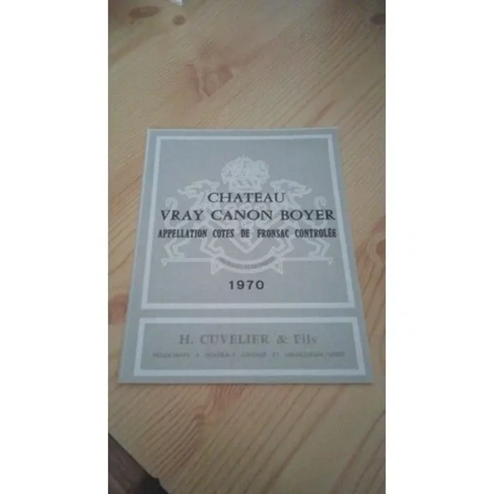 Etiquette de vin Château Vray Canon Boyer Fronsac 1970 Neuve -