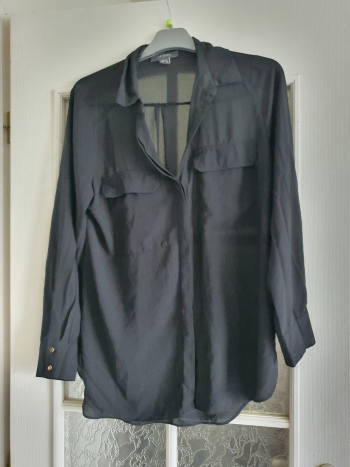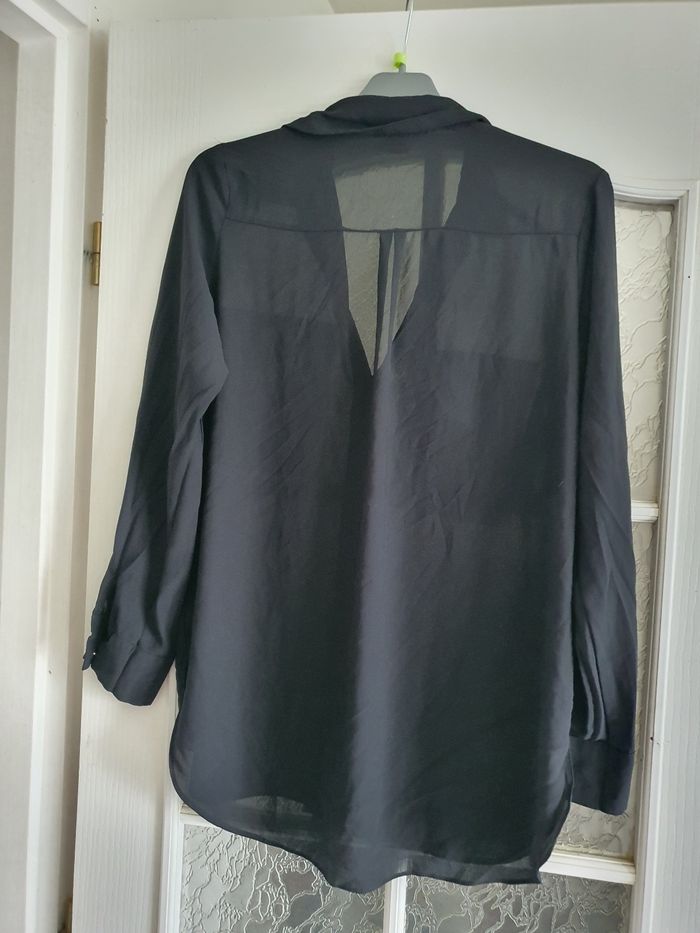 Chemisier noir légèrement transparent Taille 40 100% polyester Bon état