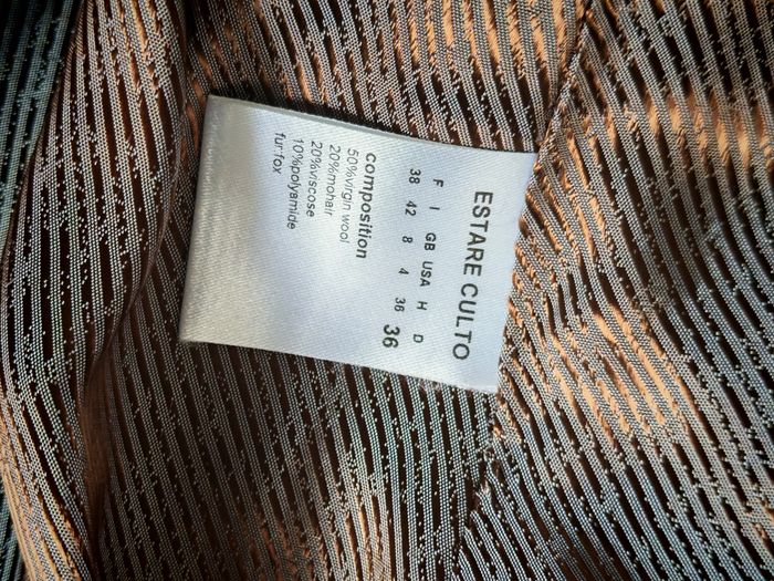 Manteau pour femme de la marque Estare Culto de taille 38. Composé de 50 % de laine vierge 20 % de mohair 20 % de viscose et 10 % de polyamide en très bon état. Manteau très chic. Bien regarder les photos pour la description
