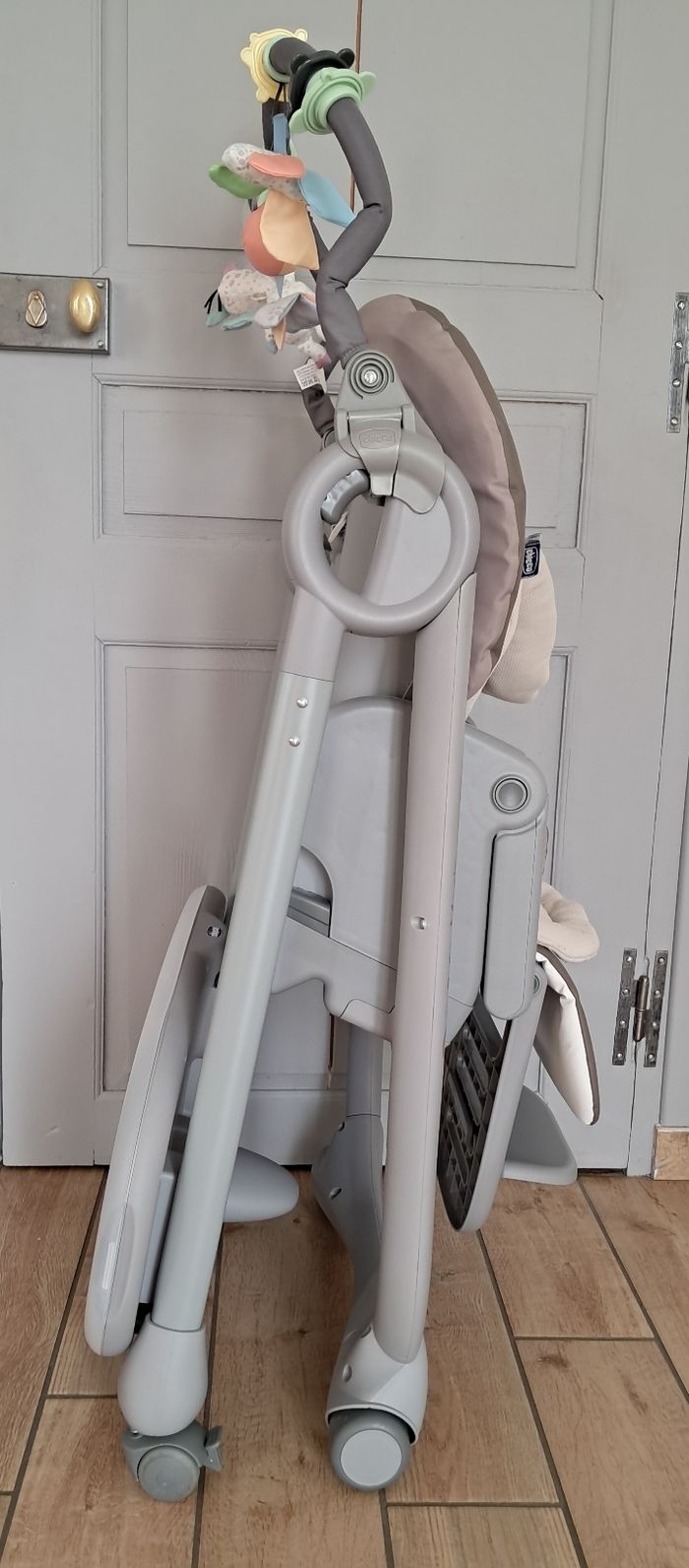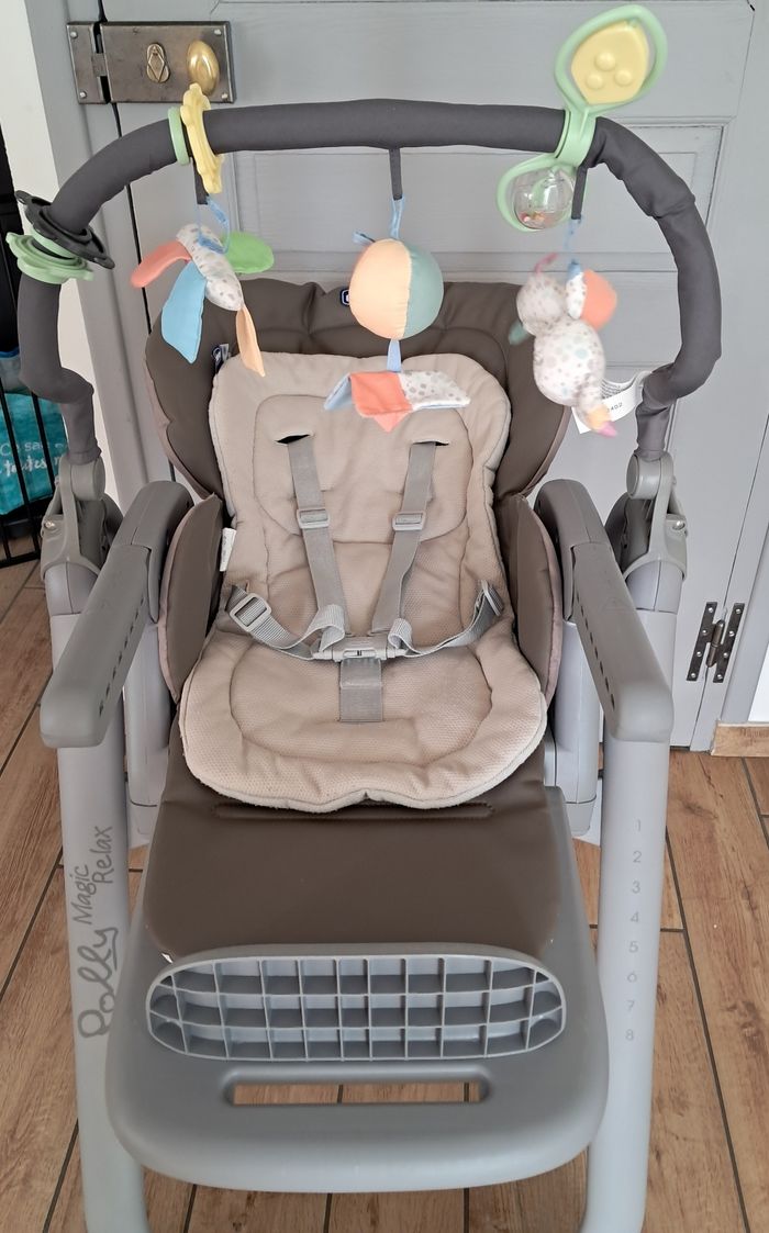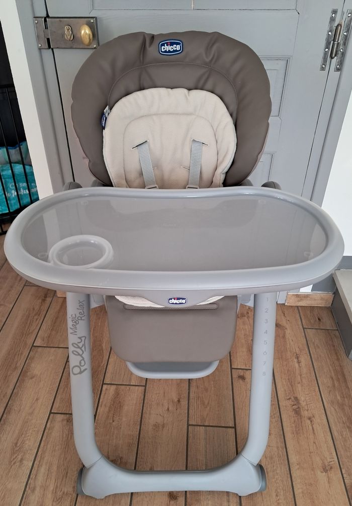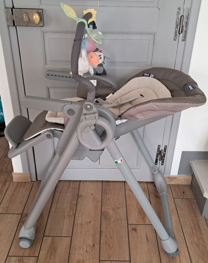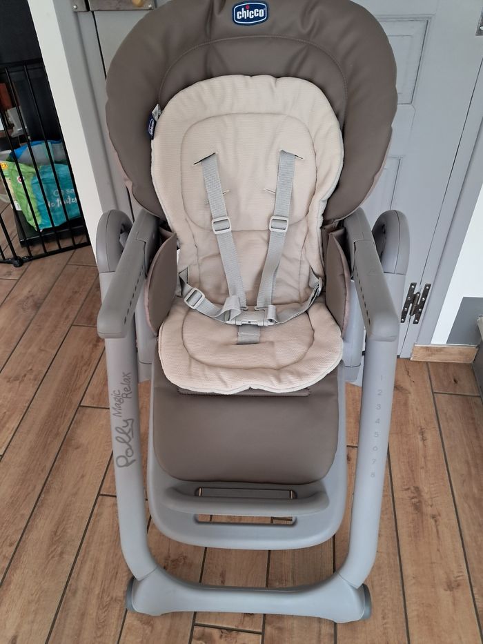 Chaise haute polly magic relax de chicco. Très peu servie. Pour enfant de naissance a 3 ans. 8 réglages en hauteur 4 réglages dossier inclinable Repose pieds réglable avec cale pieds . Réducteur tissus. 4 roues dont 2 avec freins. Pliable pour gain de place Entièrement lavée. Maison non fumeur Plus de photo sur demande ⚠️⚠️⚠️Envoi uniquement collissimo la poste ..⚠️⚠️