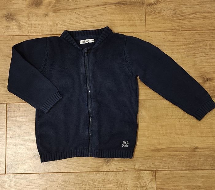Gilet 24 mois Gémo. Couleur bleue marine. Ouverture par fermeture Éclair.
