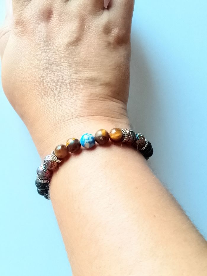 Bracelet 7 chakras. (protection, spirituel, bohème, idéal cadeau) DESCRIPTIF : Couleur : multicolore, noir Taille de la pierre : 8 mm. Tour de poignet : 19 cm. Envoi rapide et soigné.