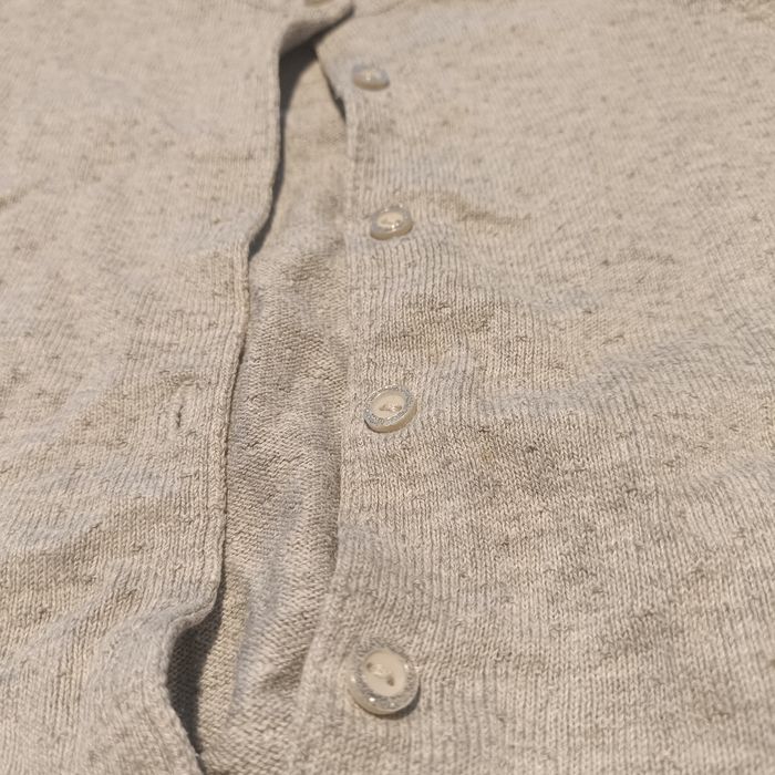 2 gilets ( un gris et un jaune) à boutons de différentes marques.