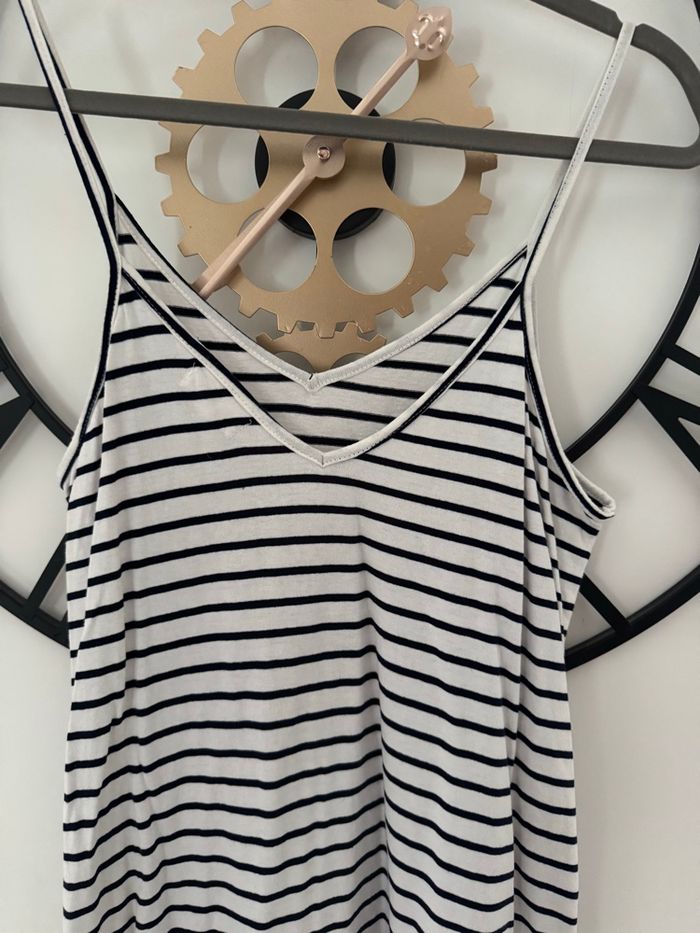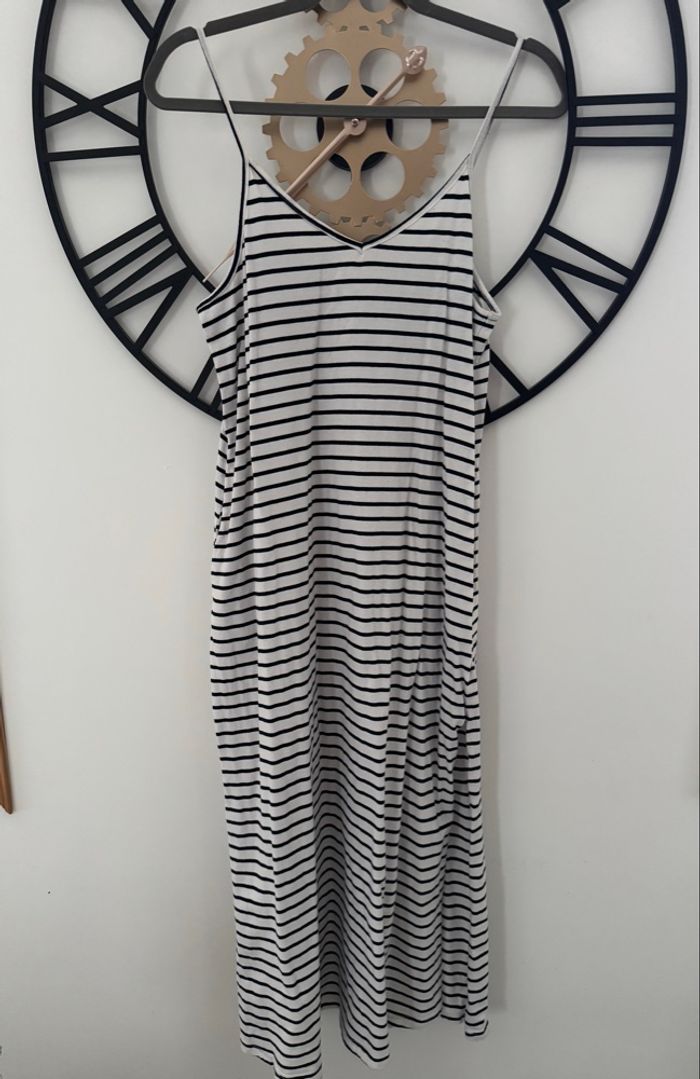 Robe été longue avec ouverture de chaque côté et des poches Taille S/M Acheter en boutique indépendante Couleur blanc et bleu marine