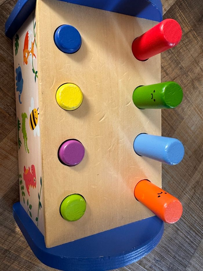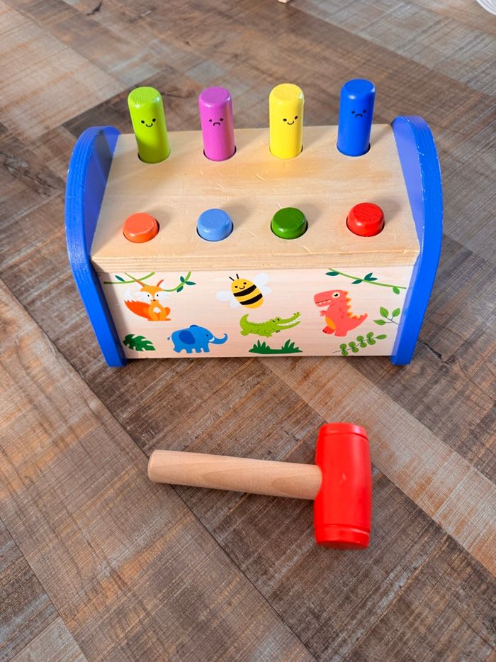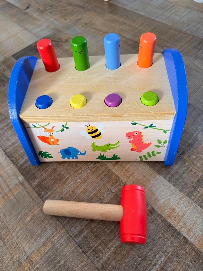 Jouet en bois avec marteau Très bon état mais des marques de marteau sur le bois