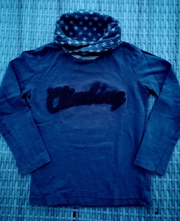T-shirt manches longues 8 ans. Bleu marine. Col montant. #elojohn8ansgarcon #8ans #8ansgarcon