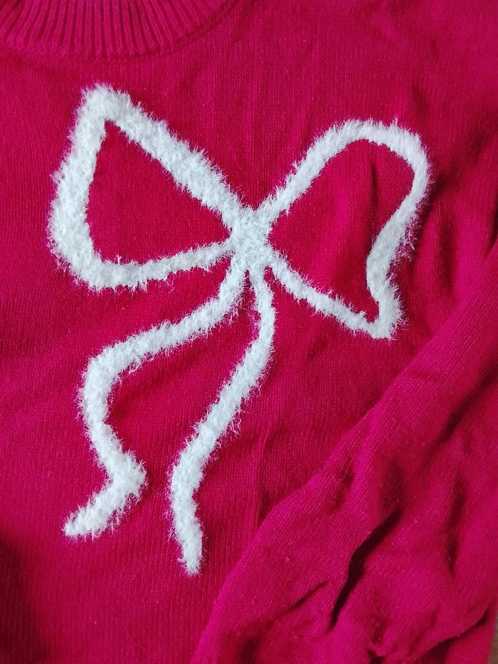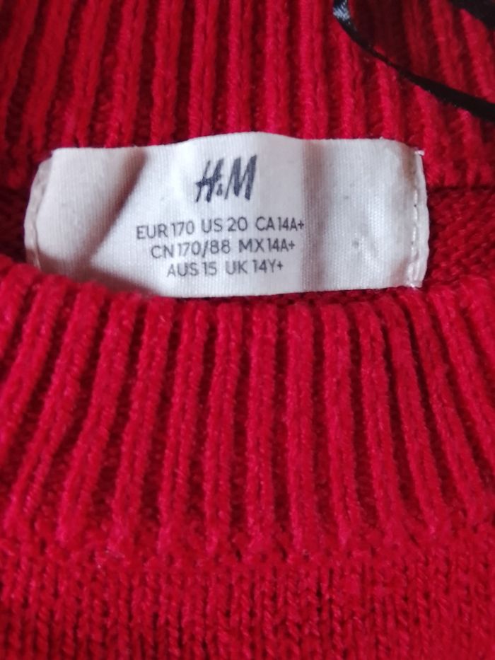 Pull h&m rouge avec un noeud blanc Taille : 14A+