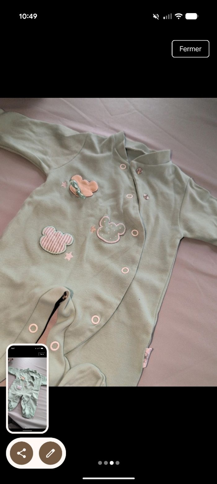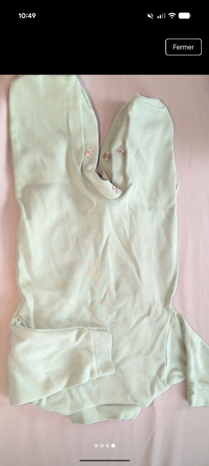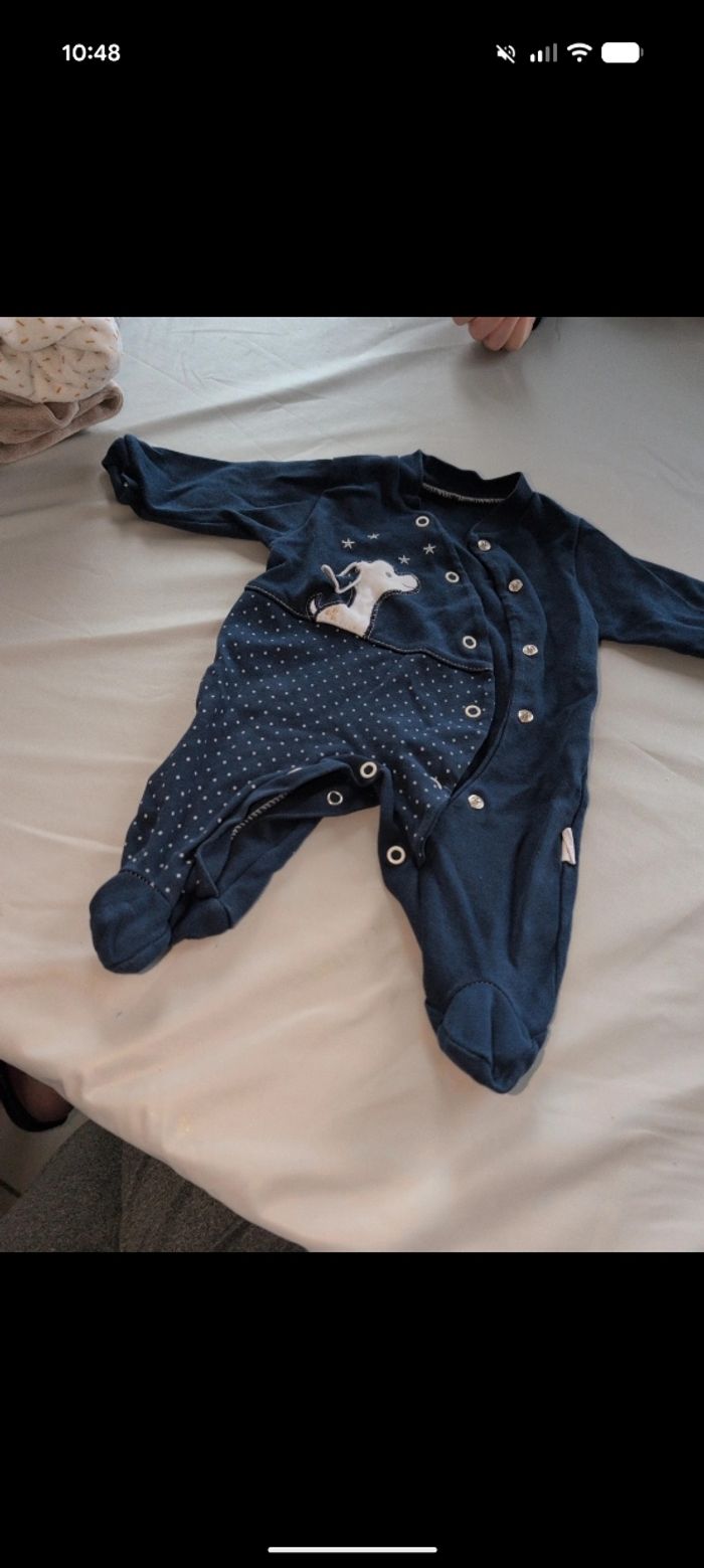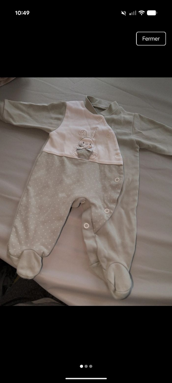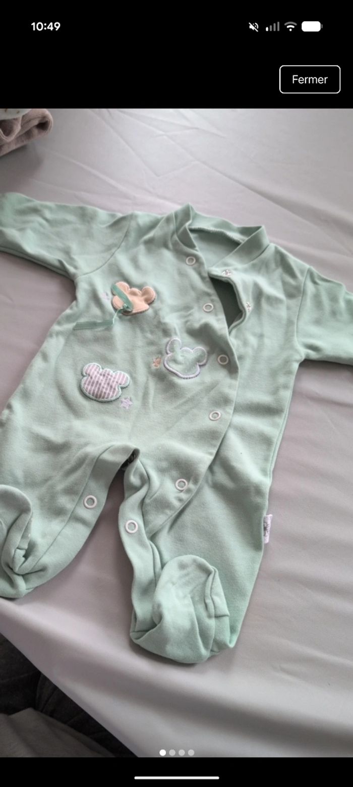Vends pyjama taille naissance mixte fait par une créatrice . 6€ les 3 ou 3€ le pyjama.
