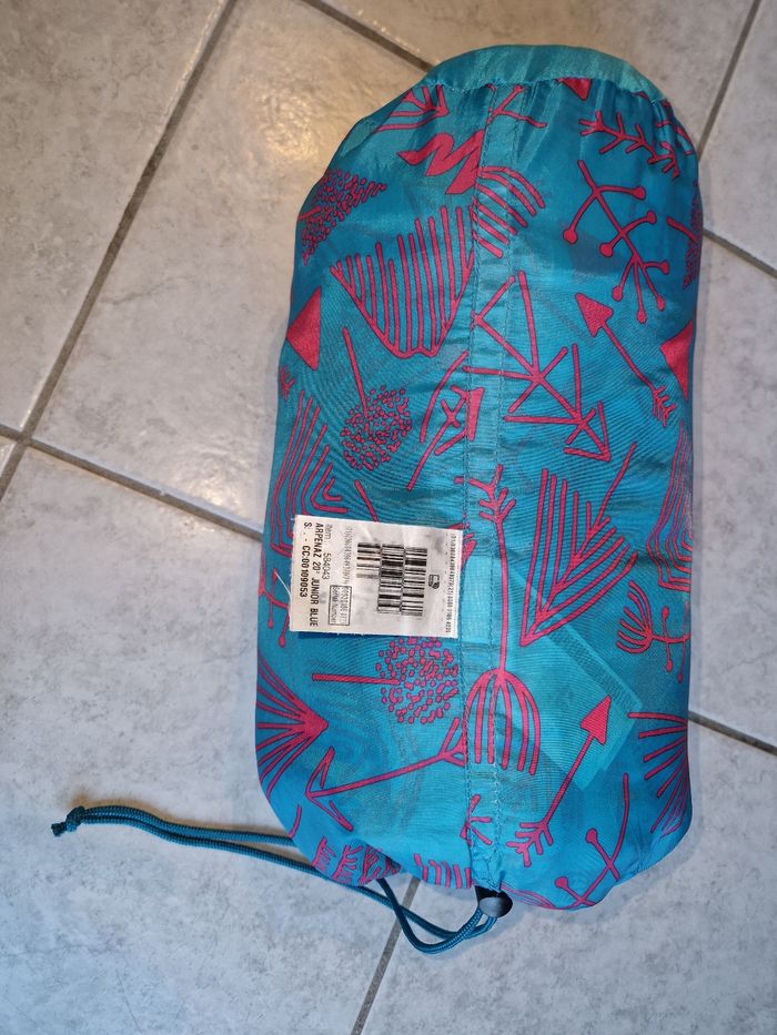 Accompagnez les premières nuits en camping de votre enfant avec ce sac de couchage adaptable en couette. Son volume et son garnissage assurent un confort thermique pour des températures de 20°C. Utilisable aussi pour la sieste en maternelle! Utilisable jusqu'a 140cm S'ouvre entierement Peu utilisé Comme neuf