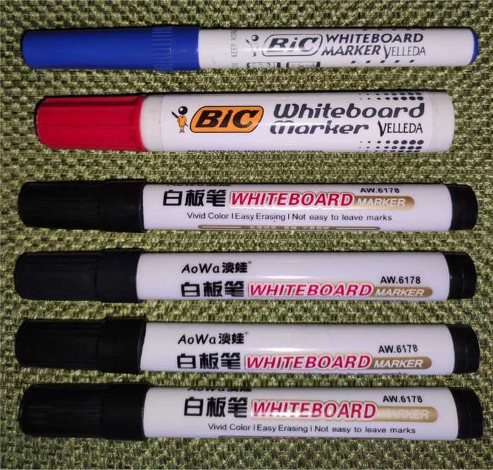 Lot de 6 marqueurs effaçables pour tableau blanc ⚫ 4 marqueurs couleur noir 🔵 1 marqueur couleur bleu 🔴 1 marqueur couleur rouge Certains ont été utilisés Vendu tel que présenté sur photo