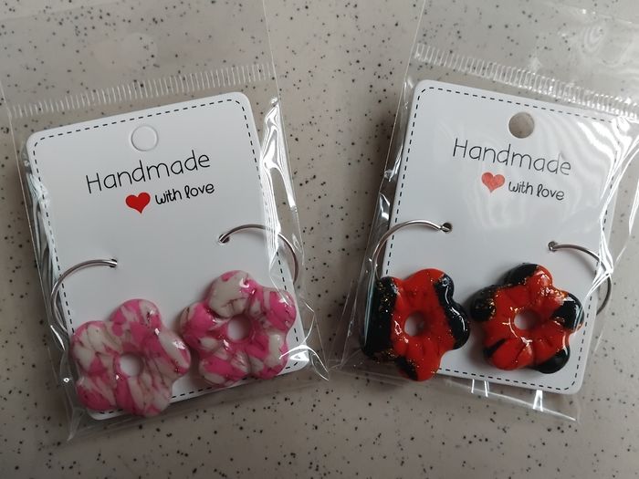 Boucle d'oreille fait main Créole avec pampille coloré au choix (voir photo) 1 paire 5 euro modèle unique Fimo, résine