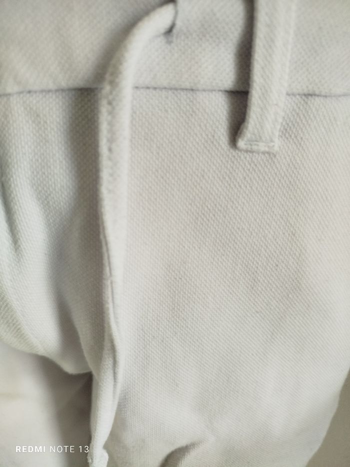 #kytieLhomme. Bermuda taille L de marque smog blanc zipper avec un bouton taille élastique et une fermeture éclair poche avant et arrière de couleur blanc tissu nid d'abeille mesure de la taille 42 cm tour de cuisse 60 cm hauteur 45 cm en parfaite état ref 420