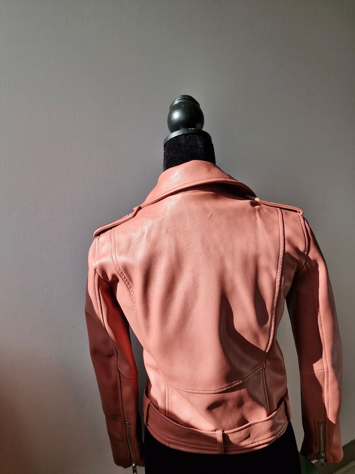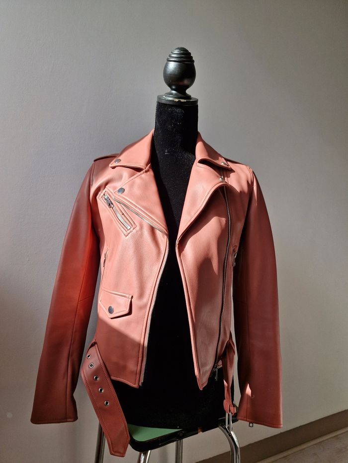Veste simili cuire rose saumon de chez zara taille xs Léger défaut au niveau du col mais ce ne se voit absolument pas quand on la porte Envoie rapide et protéger🦋 Pour plus de questions, n'hésitez pas à m'envoyer un mp 😊 #art3mis_s34