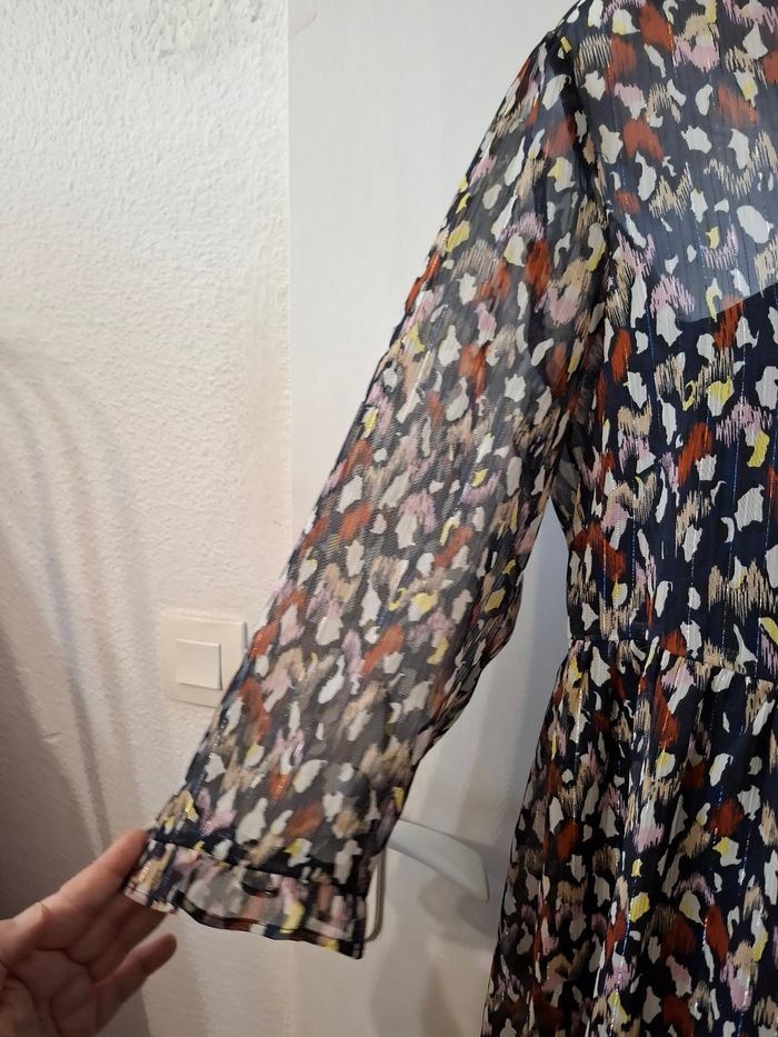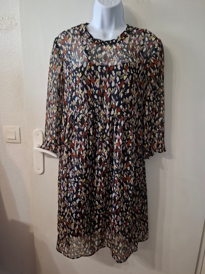Robe promod taille 36 en très bon état Longueur 95 cm Largeur aisselle à aisselle 48 cm Longueur des manches 43 cm Avec doublure robe bretelle Étiquette taille et composition coupe