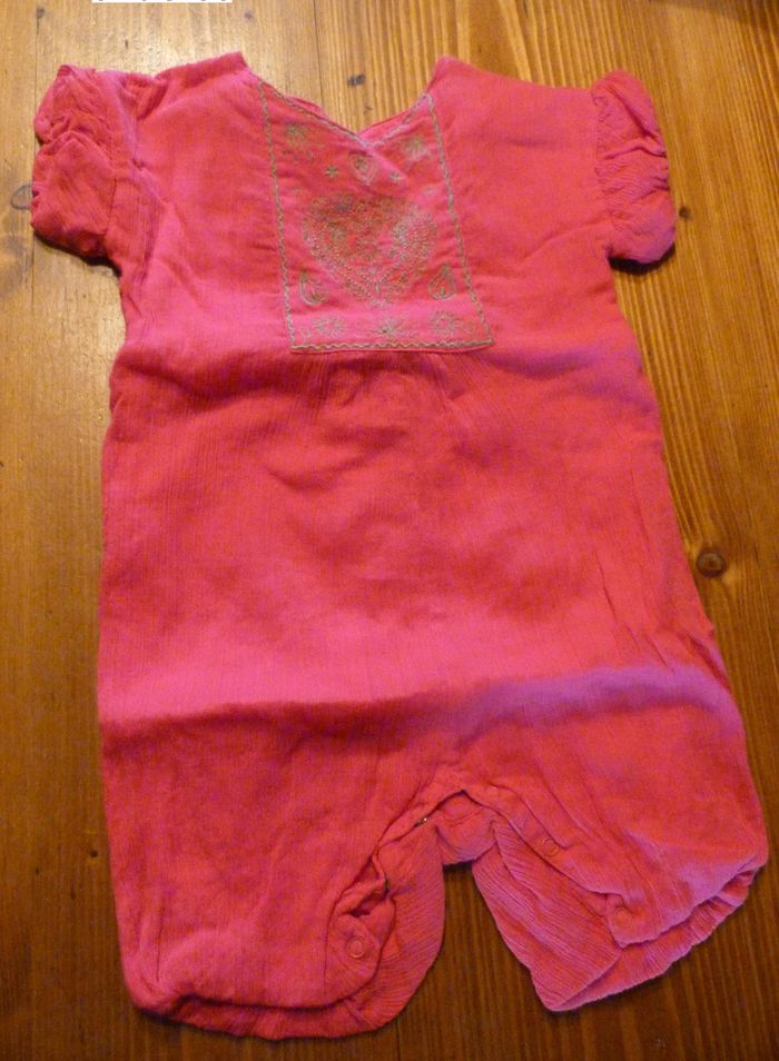 combinaison boutons partie du dos et pressions entre jambes .broderie marron clair. très bon état.