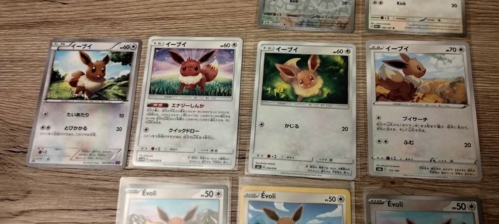 Lots de cartes Pokémon Evoli japonaises....fr.. anglais en haut trois cartes Pokémon état moyen le reste très bon état
