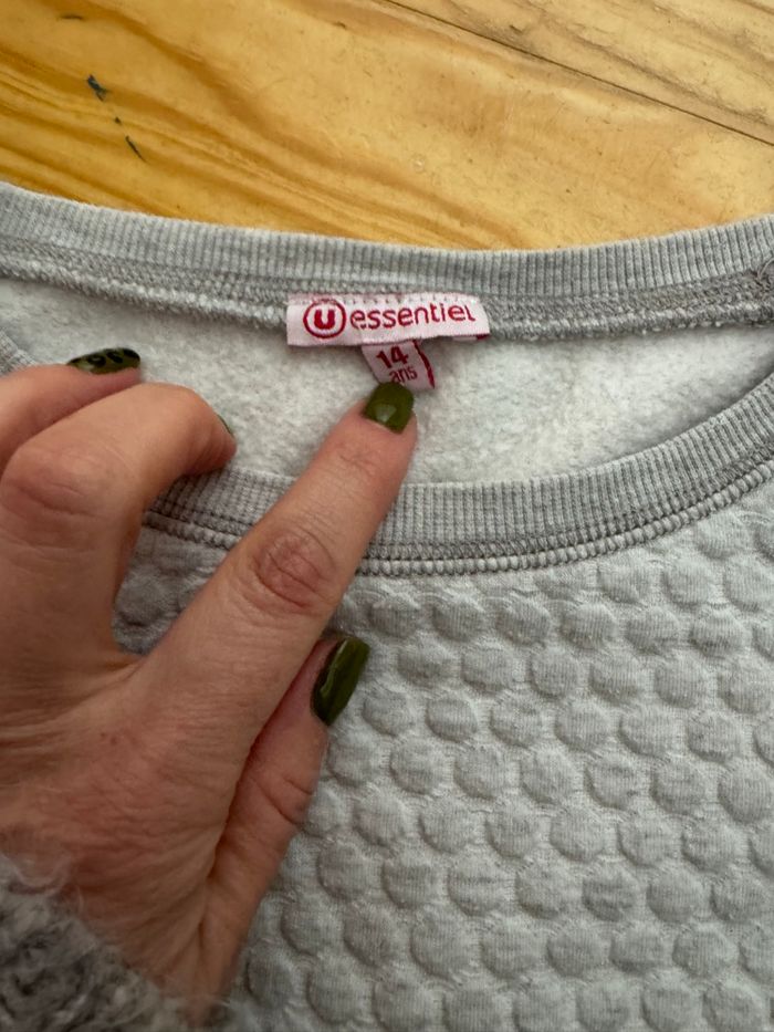 Pull effet capitonné Simple Gris Marque U essentiel Taille 14 ans