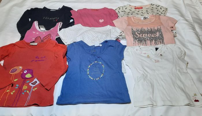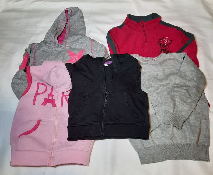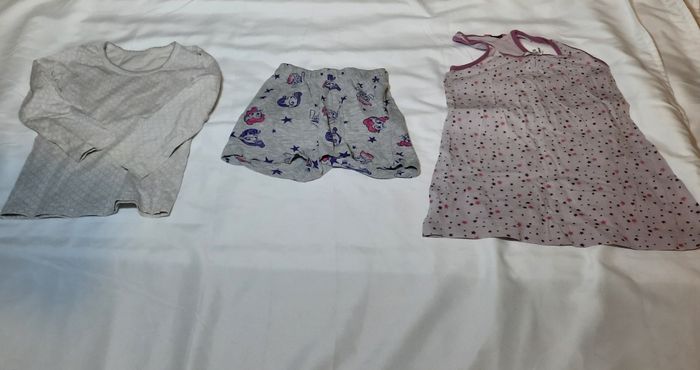Le lot comprend : 5 shorts , 2 veste dont une en jeans 7 robes 9 tee-shirts 5 pulls / gilet 1 salopette 1 short pyjama + 2 haut pyjama 10 pantalons ( 4 leggins, 3 jeans , 2 jogging et 1 pantalon cargo ) Plusieurs marque De bon état à très bon etat 42 pièces pour 40€