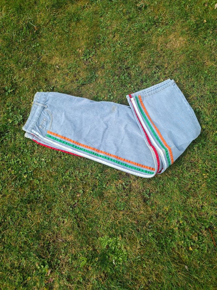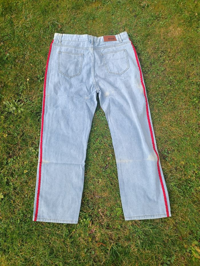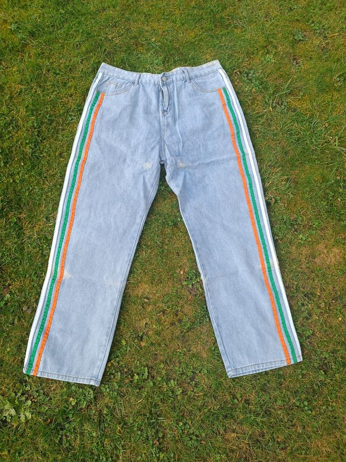 Jean bleu clair à bandes multicolore streetwear L homme  - photo numéro 1
